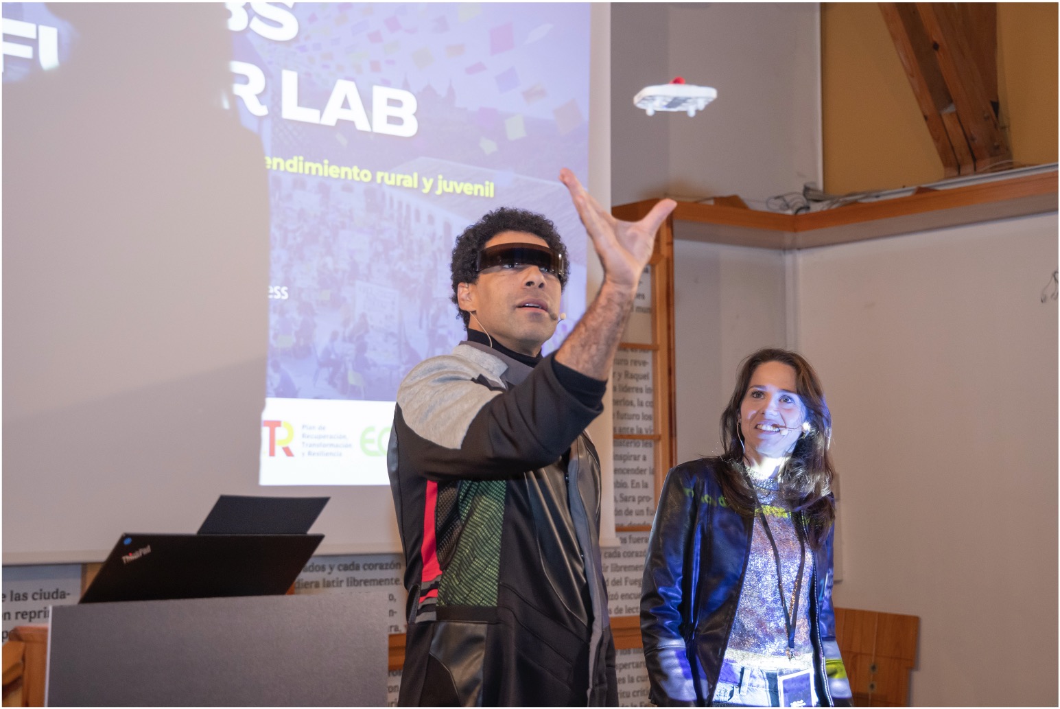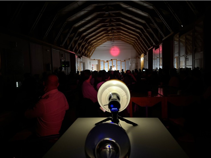 Como parte de la experiencia, los participantes interactuaron con un funcionario del futuro, un personaje vestido con una sudadera blanca iluminada por un latido rojo. Esta figura guiaba la narrativa del evento y reforzaba la idea de que el futuro no es algo que simplemente llega, sino que lo construimos con nuestras acciones en el presente.