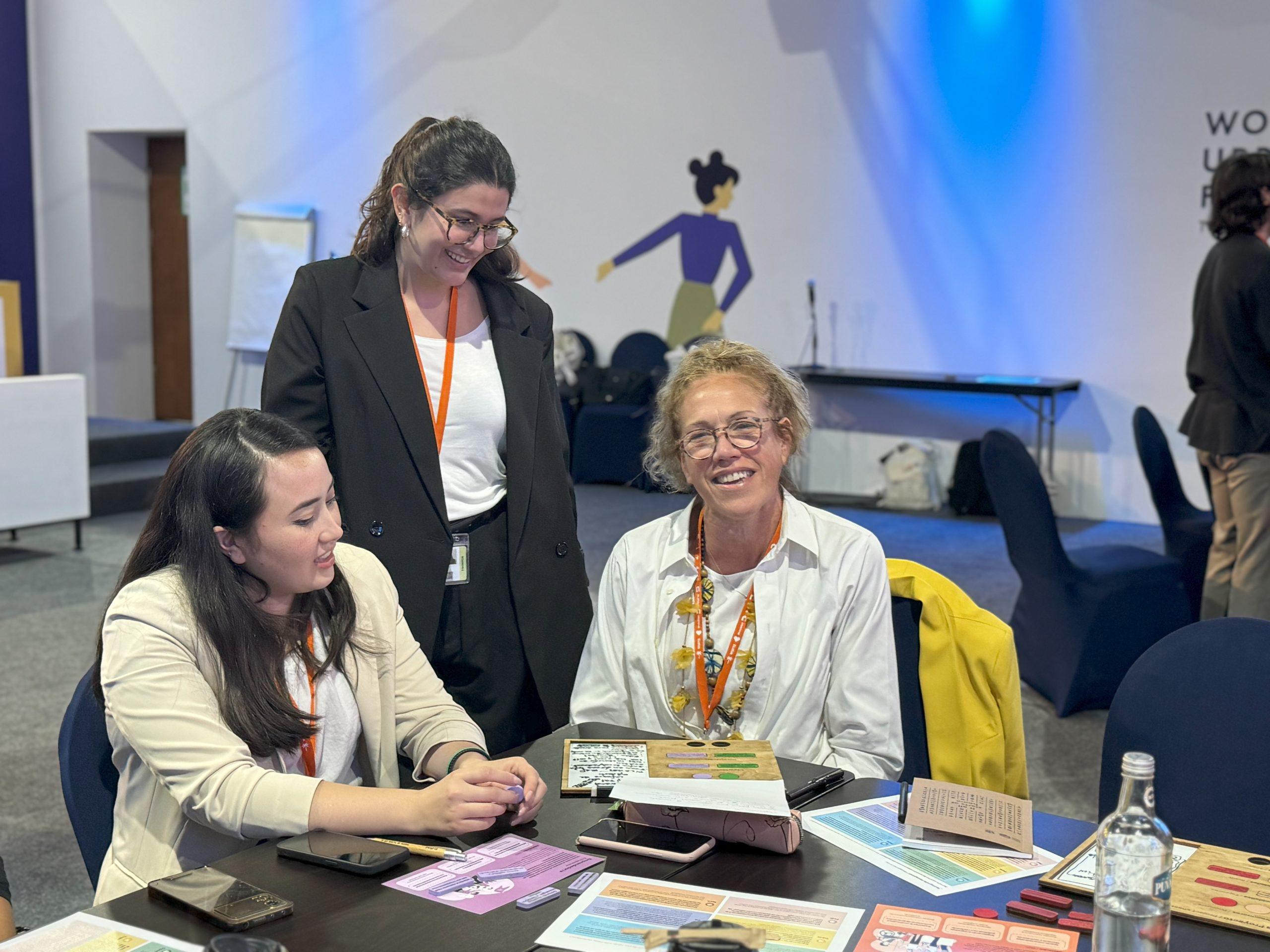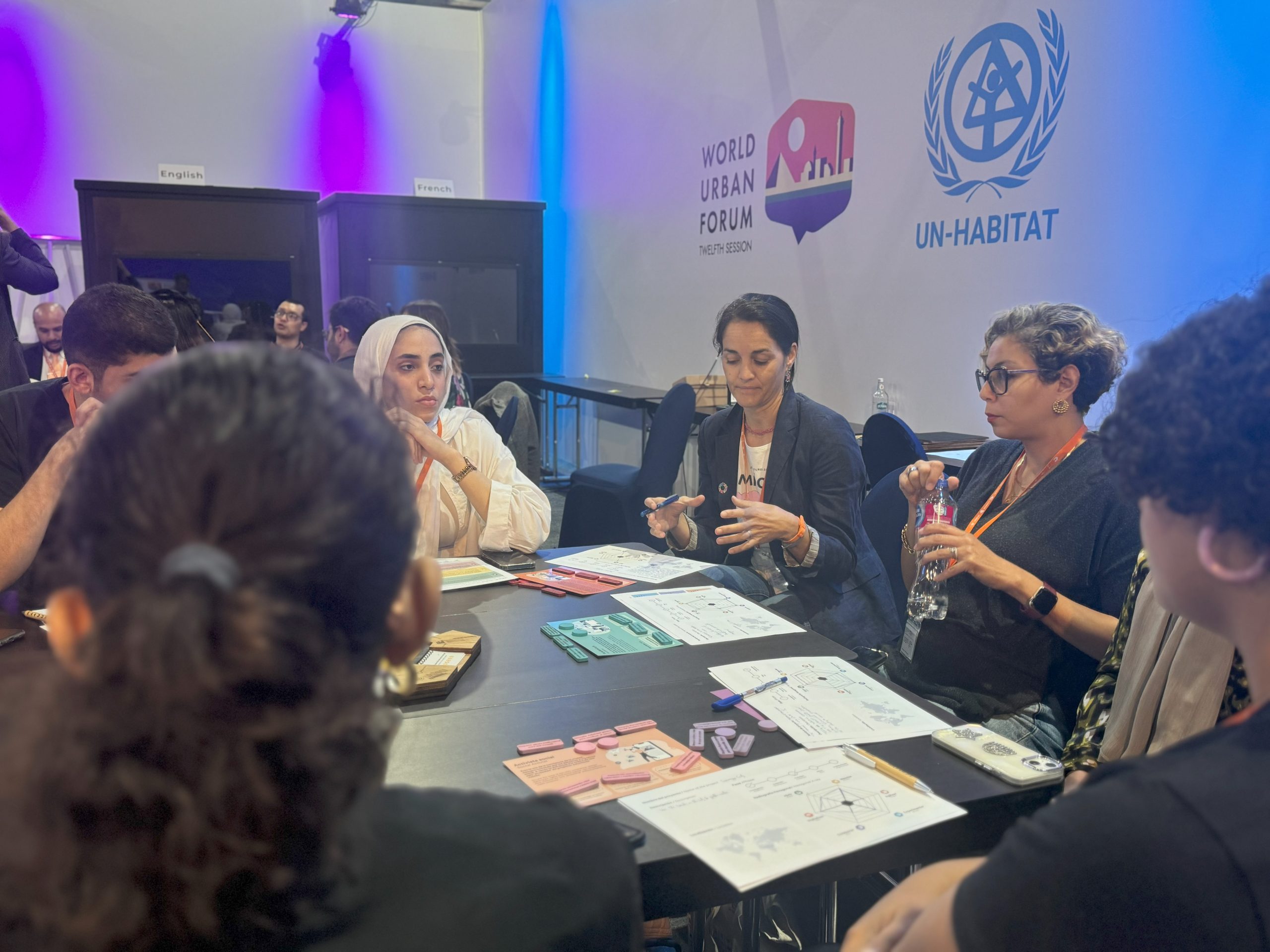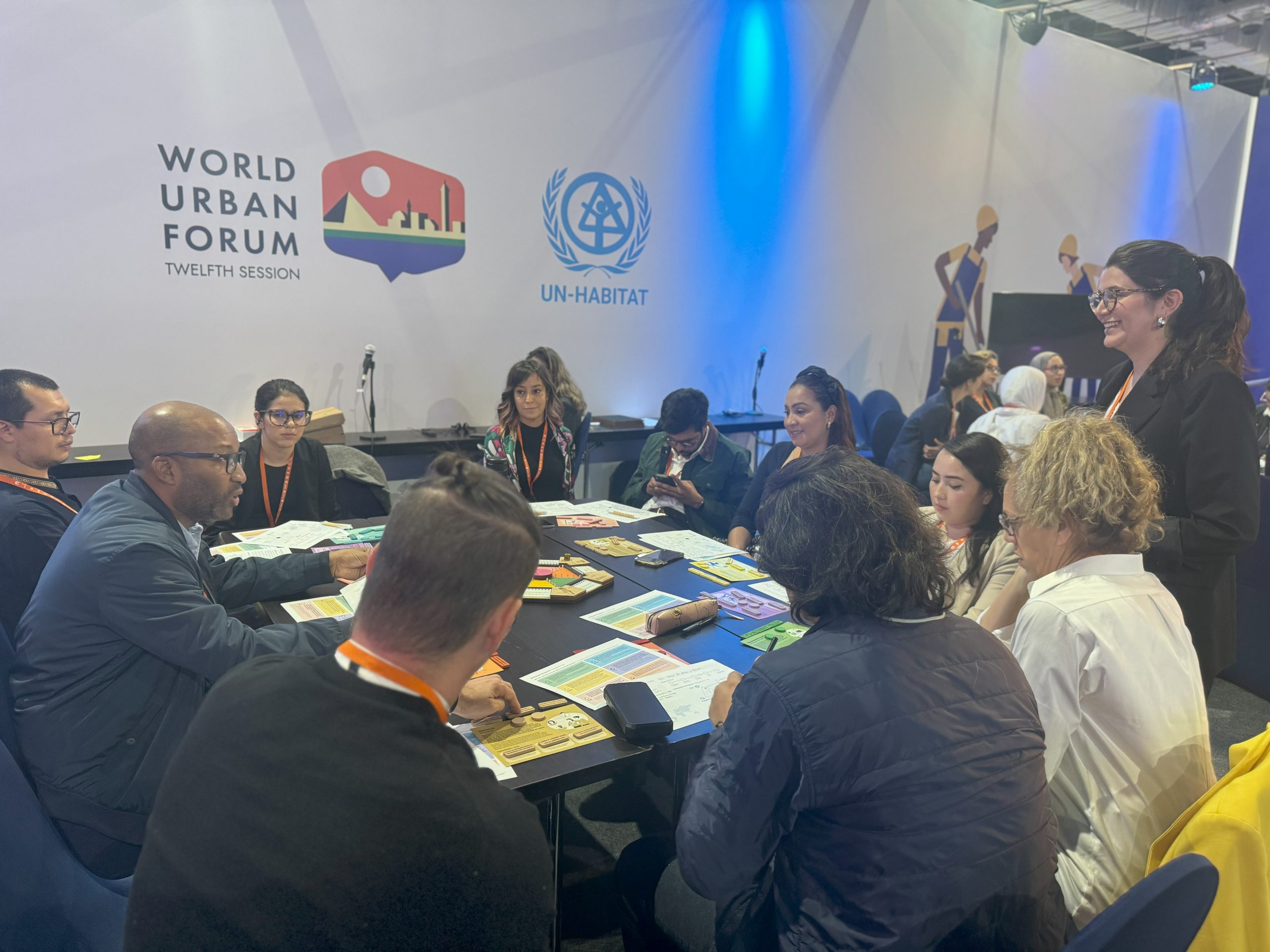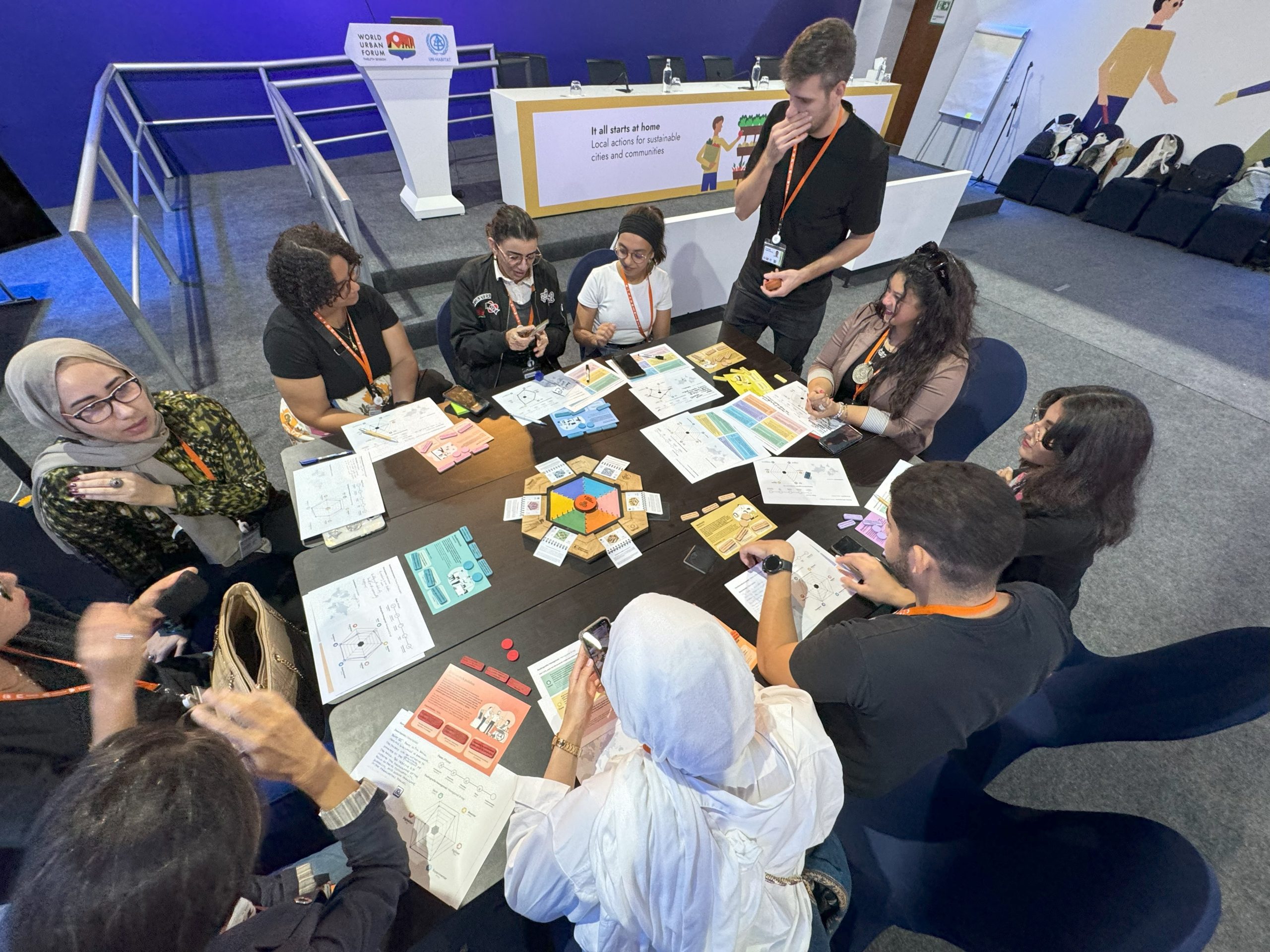 Entre las más de 700 actividades paralelas del WUF, nuestro taller se destacó por su enfoque único. Mientras la mayoría de actividades seguían formatos tradicionales (charlas, ponencias, debates, etc), nosotros apostamos por algo diferente: una experiencia gamificada que no solo era didáctica, sino que permitía aplicar el cambio sistémico de manera divertida e intuitiva.