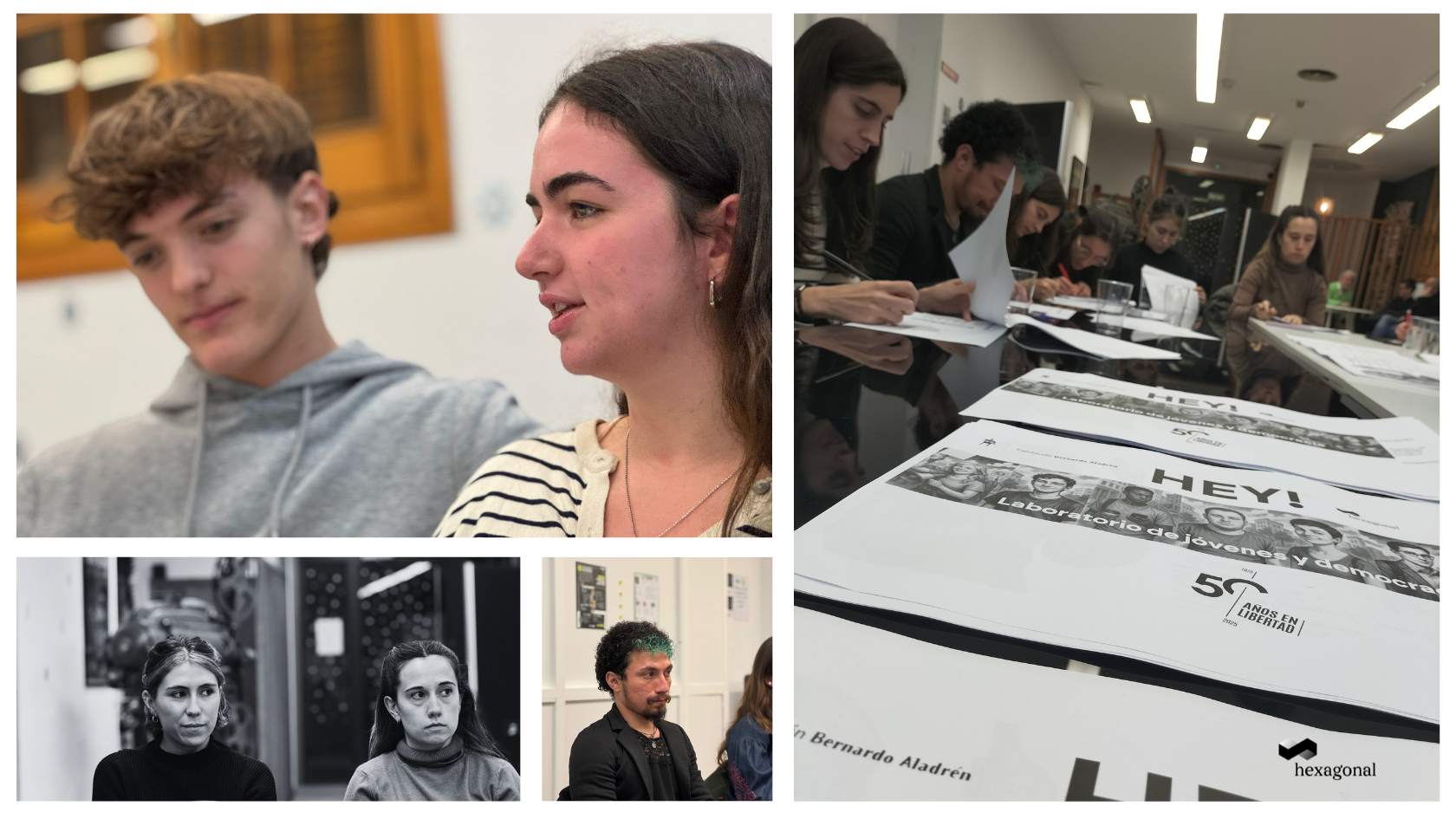 La democracia española acaba de superar medio siglo de vida. Lo que para algunas personas es una conquista histórica, para quienes hoy tienen menos de treinta años es... algo que vino dado. La tarde del 17 de diciembre de 2025, el cierzo de Zaragoza empujó a doce jóvenes de entre 17 y 30 años a participar en un laboratorio diseñado y facilitado por Hexagonal para comprender qué piensan sobre ella.