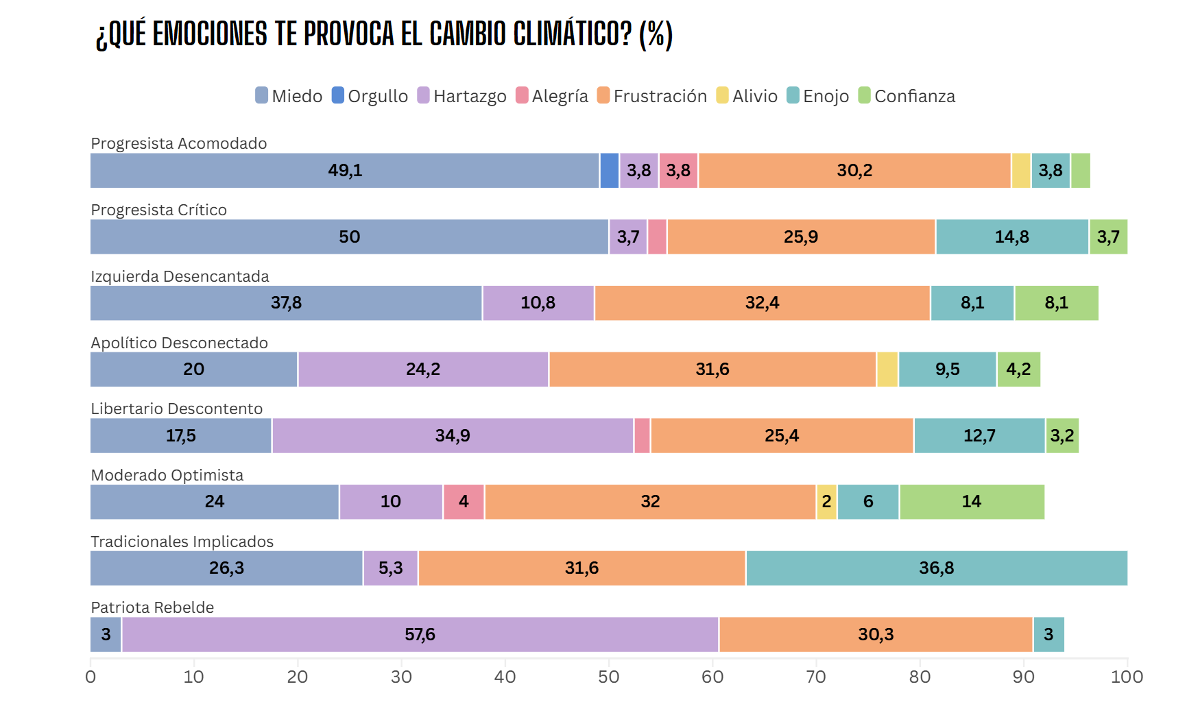 Cuando se pregunta a los perfiles involucionistas qué emoción les genera el cambio climático, la respuesta cambia según el segmento, pero hay una constante: la frustración es transversal. A todos y todas, con distintos orígenes y significados.